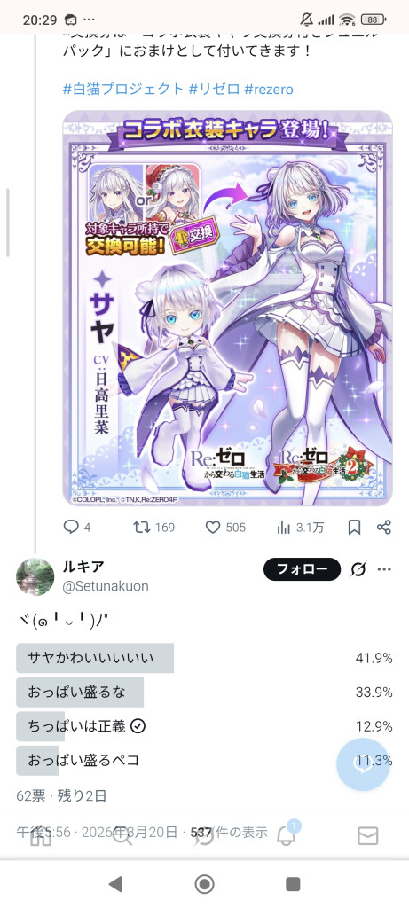 サヤにリゼロキャラのコスさせるならエキドバの方が似合いそう
