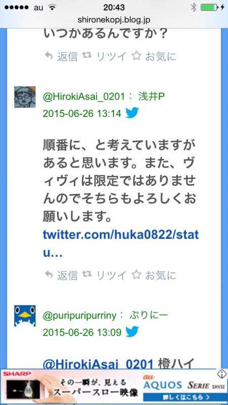 浅井P にたのんで了解した会話がツイッターにあったよ