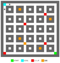 1面の壁で囲われた部屋へは、2面の落とし穴から入ることができる。