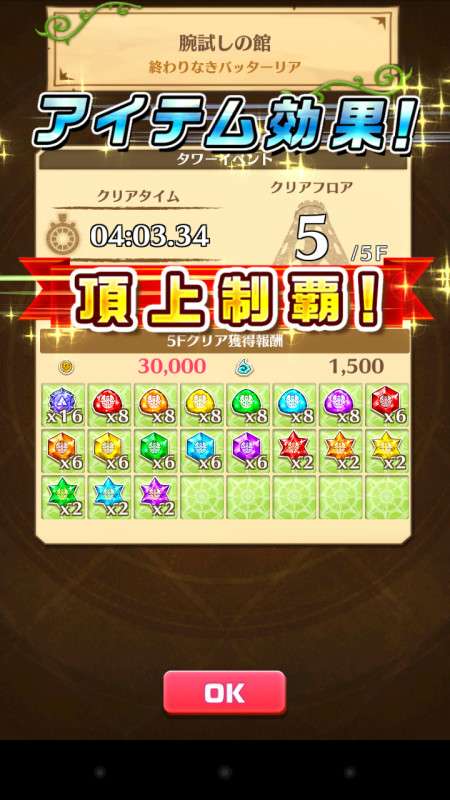 ![]() | ジュエル×202 ジュエル×5(ルーンメモリー) ジュエル×5(追加クエスト) クリア報酬 |