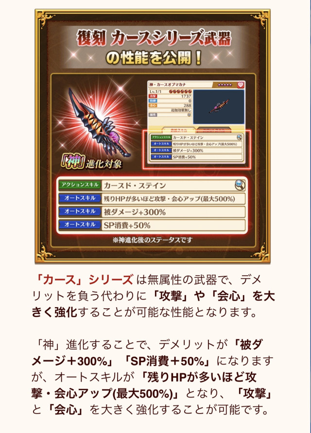 31日から神進化呪槍イシアが白猫崩壊させるから持ってないやつは震えてな
