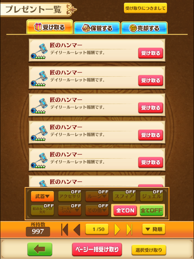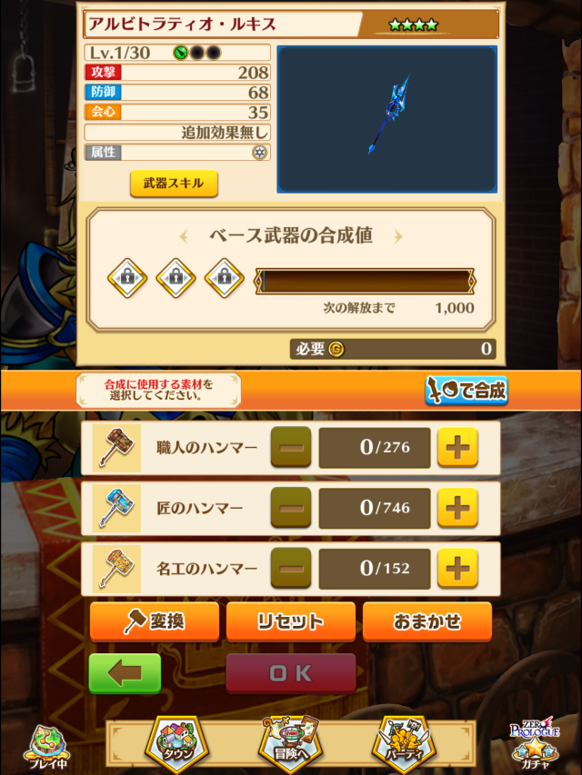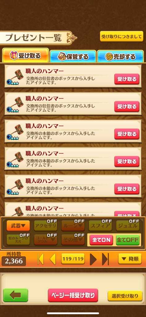 銅ハンマー800本、銀ハンマー1300、金ハンマー200本