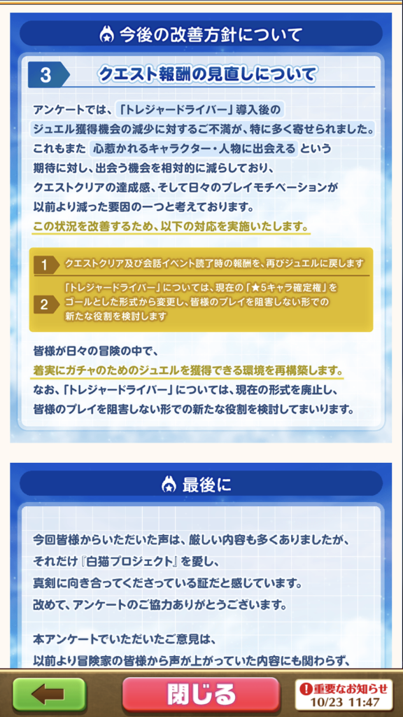 ジュエルの配布は元に戻せばいいと思うけど、ガチャはもっと確率を絞るべきだと思う🙄
