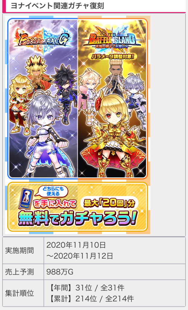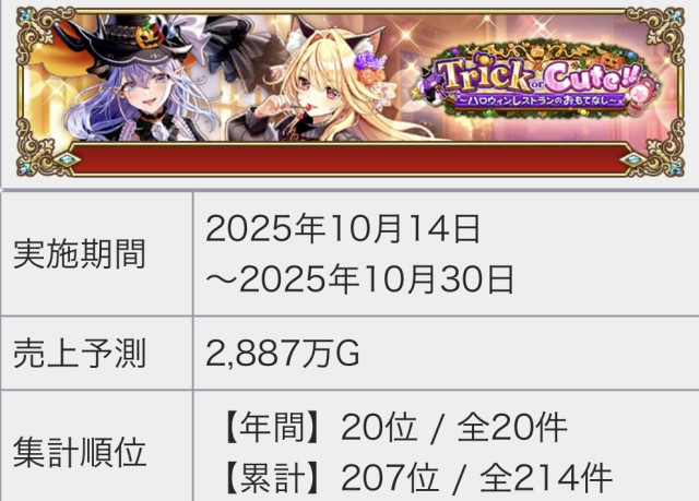 今回のイベより売り上げ下なのほぼ復刻じゃね?