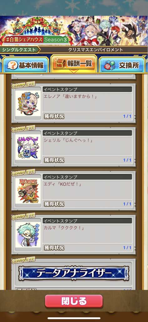 島コンプリート報酬早見表