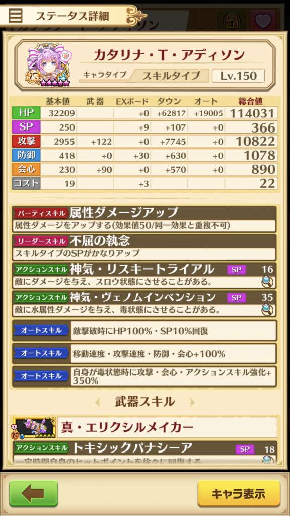 ムカデが発動しないのはコロプラ語として「攻撃を受ける」と「被ダメージ」は別物としてるのかなとも思いましたが、アビスには「被ダメージ毎AS強化」となっています。