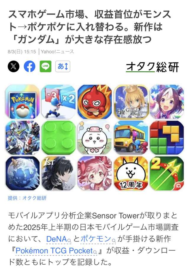ポケポケオワコン化してるけど、それでも売上トップなんやなぁ。白猫はしらん