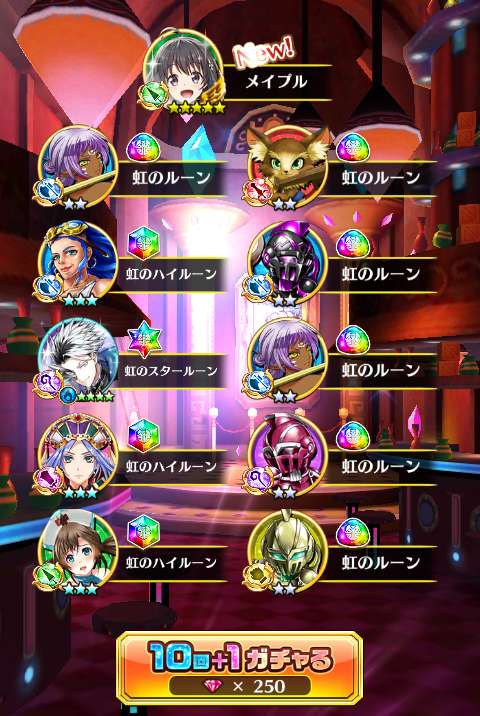白猫プロジェクトのガチャシミュレーター10連です。ゲーム内と同じ排出確率で設定してありますので、本番前の運試しにどうぞ!