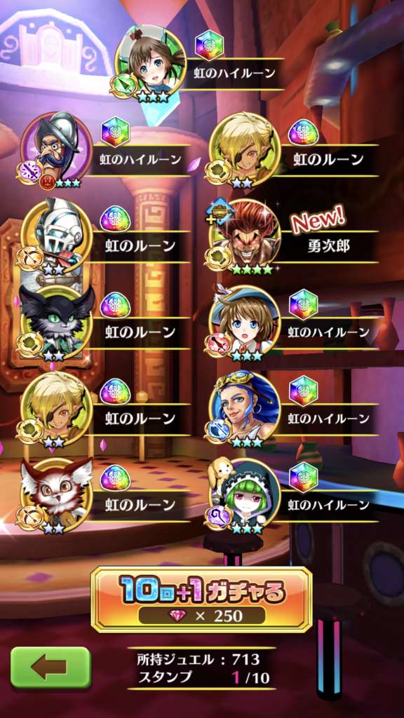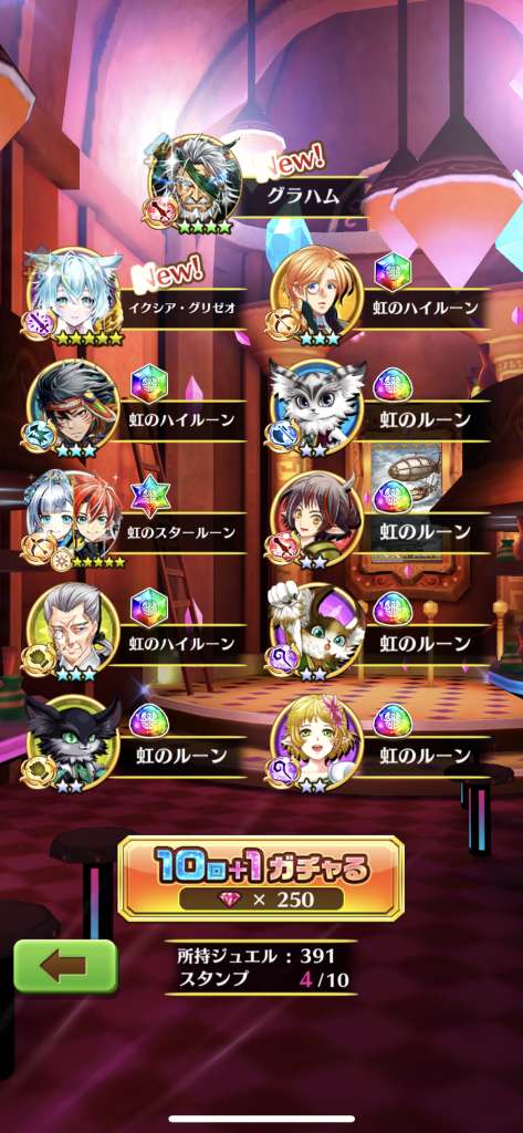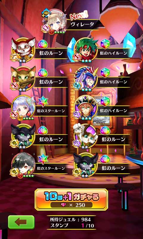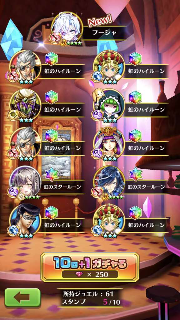 そしたら途中で星4枠で残ったキャラも引いて星5枠も被らず勝利、その余韻も冷めやまぬまま11キャラ目も普通に対象キャラでワラタ