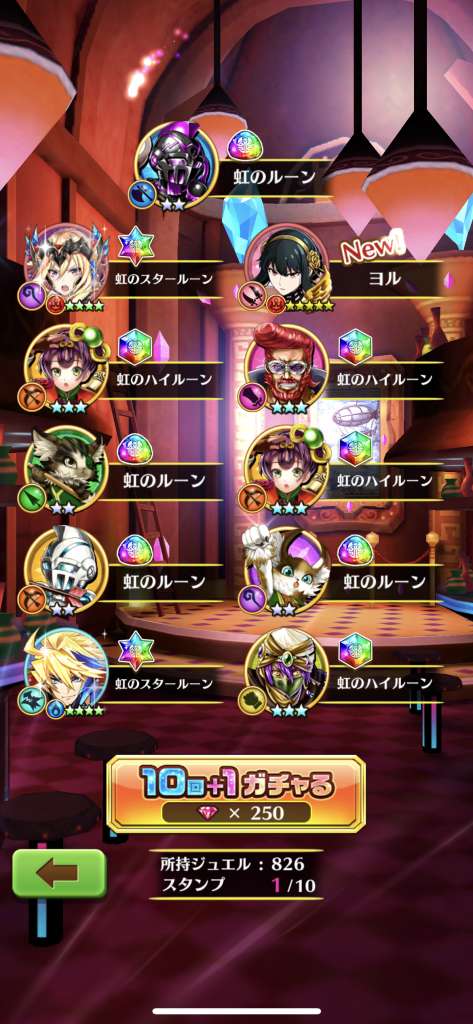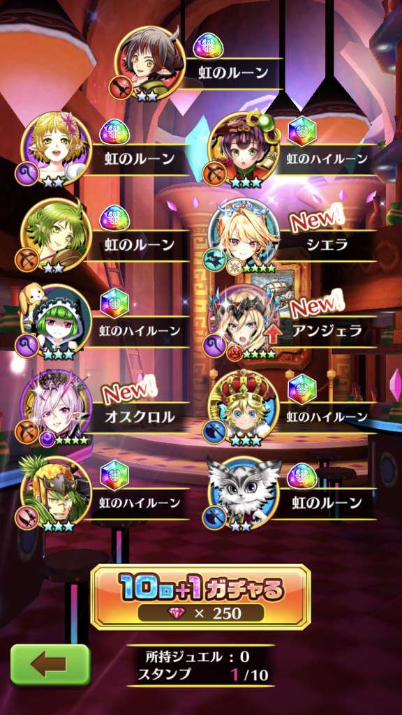 ガチャシミュレーター10連の結果