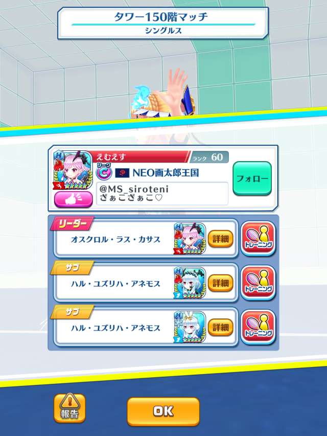 これが現状の白テニっていう感じだよね。やること無さすぎてリアルソロプレイヤーはこの掲示板で対戦相手探しに来る始末😂