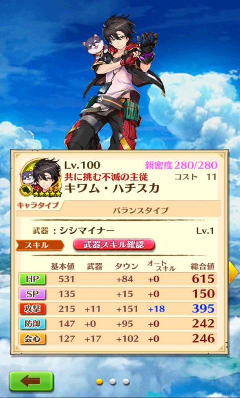 白猫プロジェクトに登場する神気キワム(武闘家)の評価とおすすめ武器を掲載しています。