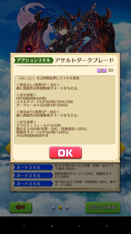 闇の王子(60秒/攻撃・会心・闇属性ダメージ+150%、移動速度+50%)
