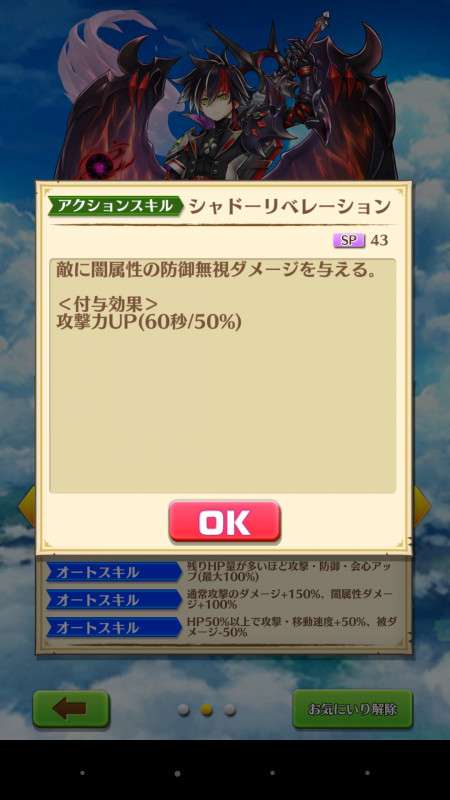通常攻撃のダメージ+150%、アクションスキル強化・闇属性ダメージ+300%