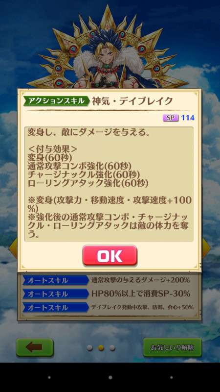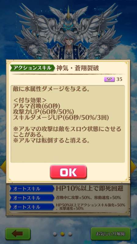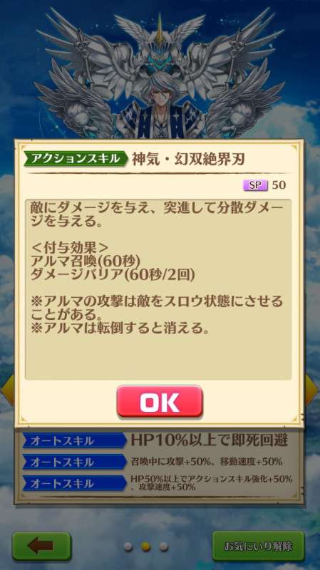 HP50%以上でアクションスキル強化+50%、攻撃速度+50%