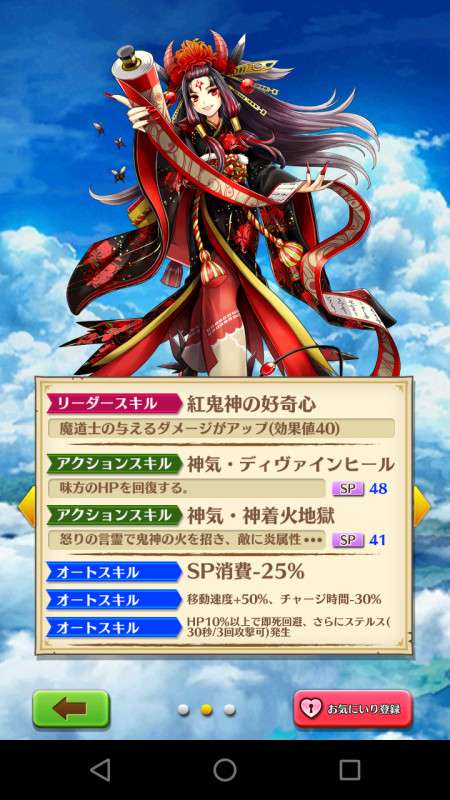 | アクション スキル | 神気・ディヴァインヒール 味方のHPを回復する <仲間への付与効果> HP自動回復(60秒) <自分への付与効果> SP自動回復(60秒) |