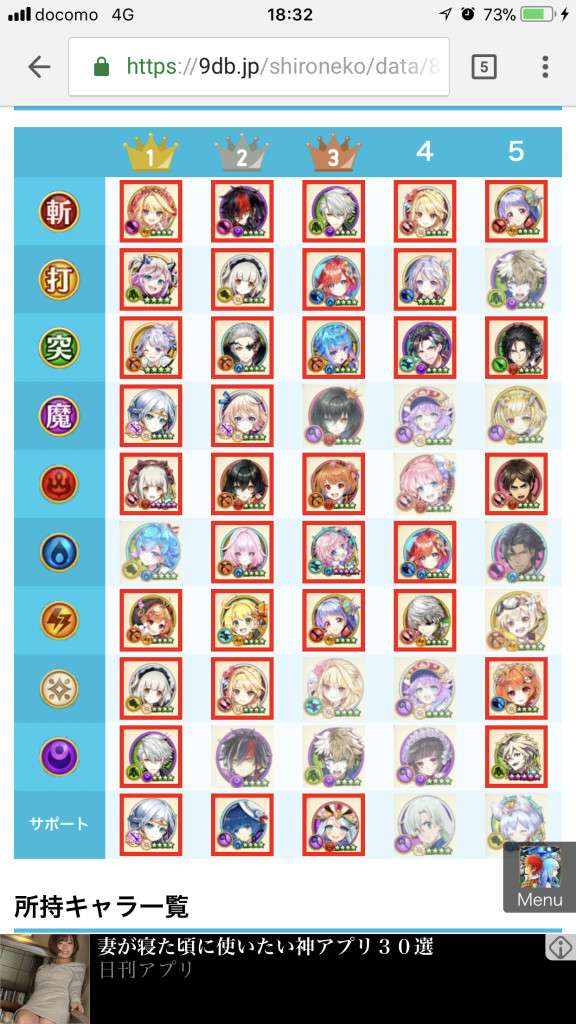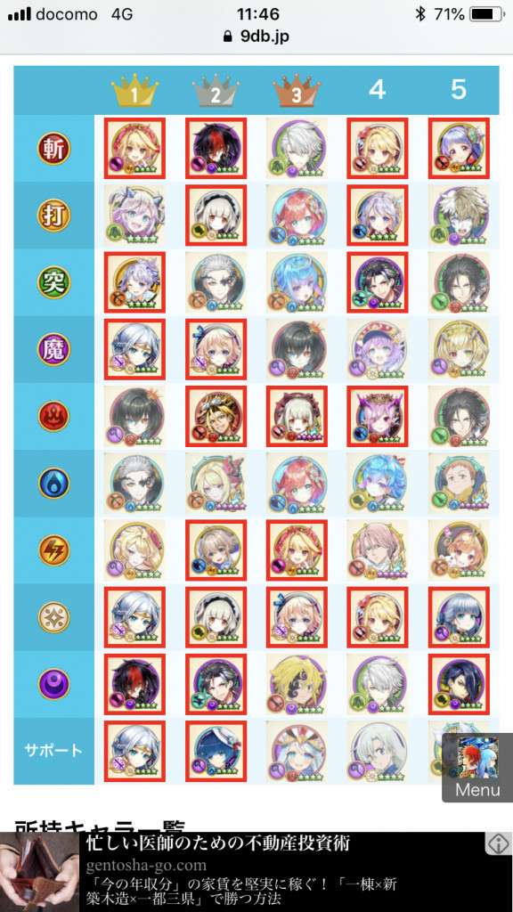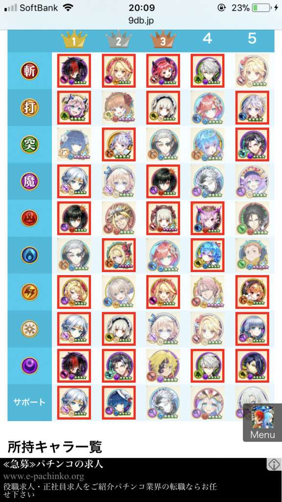 所持キャラ一覧