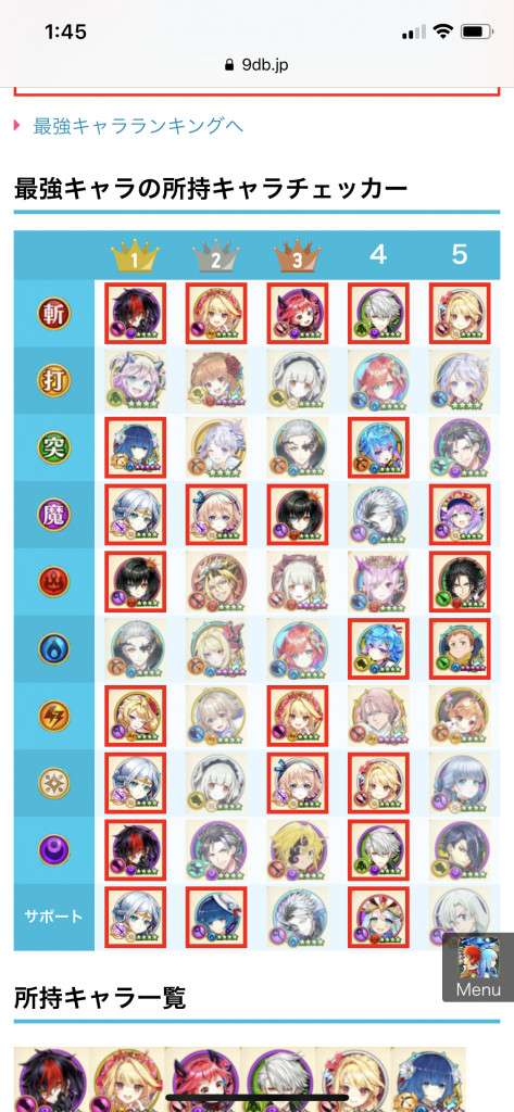 最強キャラの所持キャラチェッカー