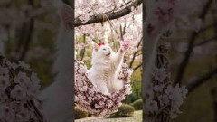 🌸白猫ミルク、桜のブランコで春を見つめる | Milk on a Sakura Swing4 0 -