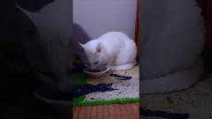 おやつを食べる白猫の雪ちゃん今年2歳メス。保護から2年目#猫多頭飼育 #保護猫122 0 -