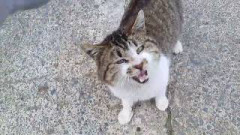 桜田工務店のキジ白猫ブルー君を頭と背中をナデナデしてる時にシャム茶トラ猫が乱入1 0 -
