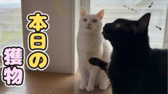 お気に入り❗️新しいおもちゃに白猫も黒猫も夢中【白黒猫とペチペチ】12 0 -