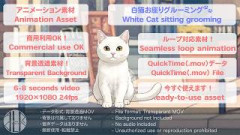 白猫お座りグルーミング【透過アニメーション素材|シームレスループ】サンプル動画0 0 -