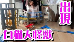 プラレールで遊んでたら白猫大怪獣が襲来w44 0 -