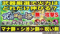 厳選すると馬鹿にできない程には火力が上がる! 武器練磨の塔 厳選前後での火力検証【無→攻撃S マナ餅・シオン餅・呪い剣】31 9 -