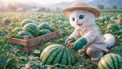 白ネコちゃん 『スイカ』カット #ASMR#AI#猫#スイカ216 0 -